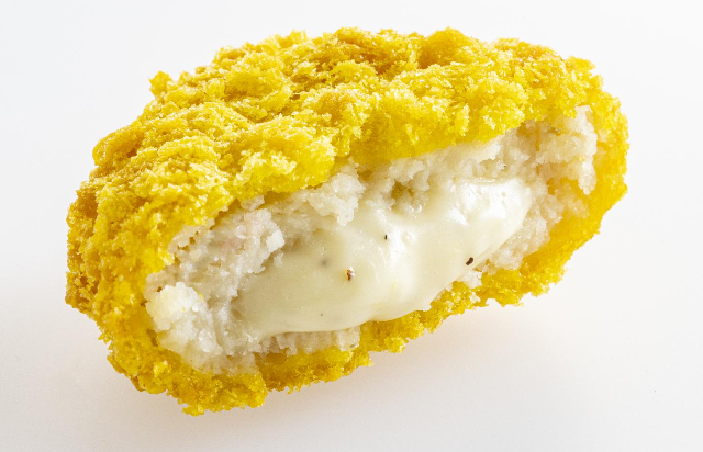 チェダーやゴーダなど4種のチーズをブレンドしたソースを、マッシュした北海道産じゃがいもで包み込み、香ばしいパン粉をまぶしてカラッと揚げたんだって!