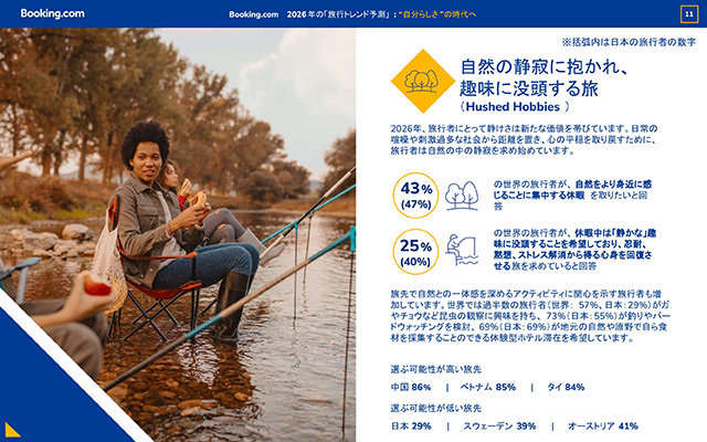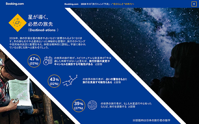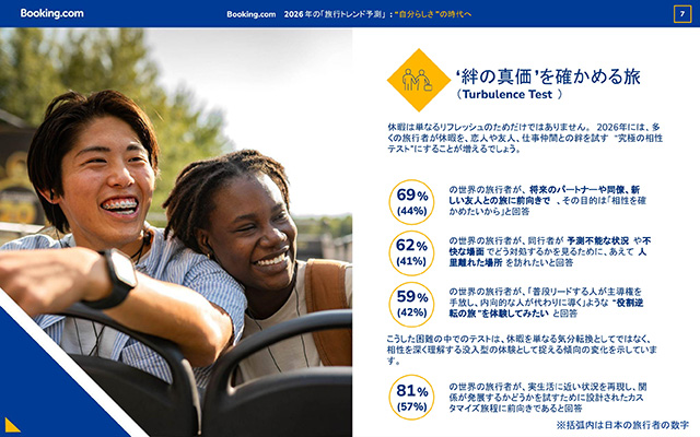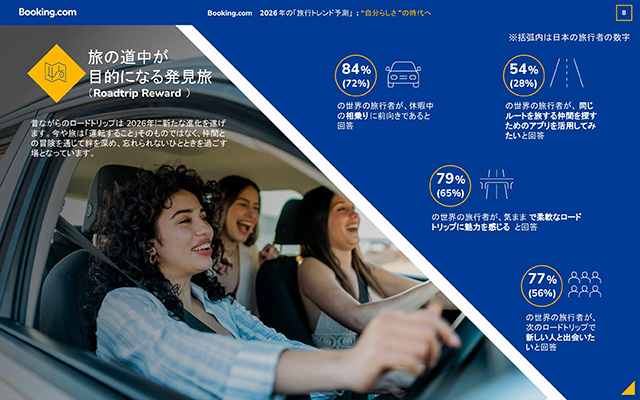 Booking.com ブッキング・ドットコム は、33の国と地域にわたる29,733人の旅行者への調査結果と同社独自の知見をもとに、2026年の「旅行トレンド予測」10選を発表。